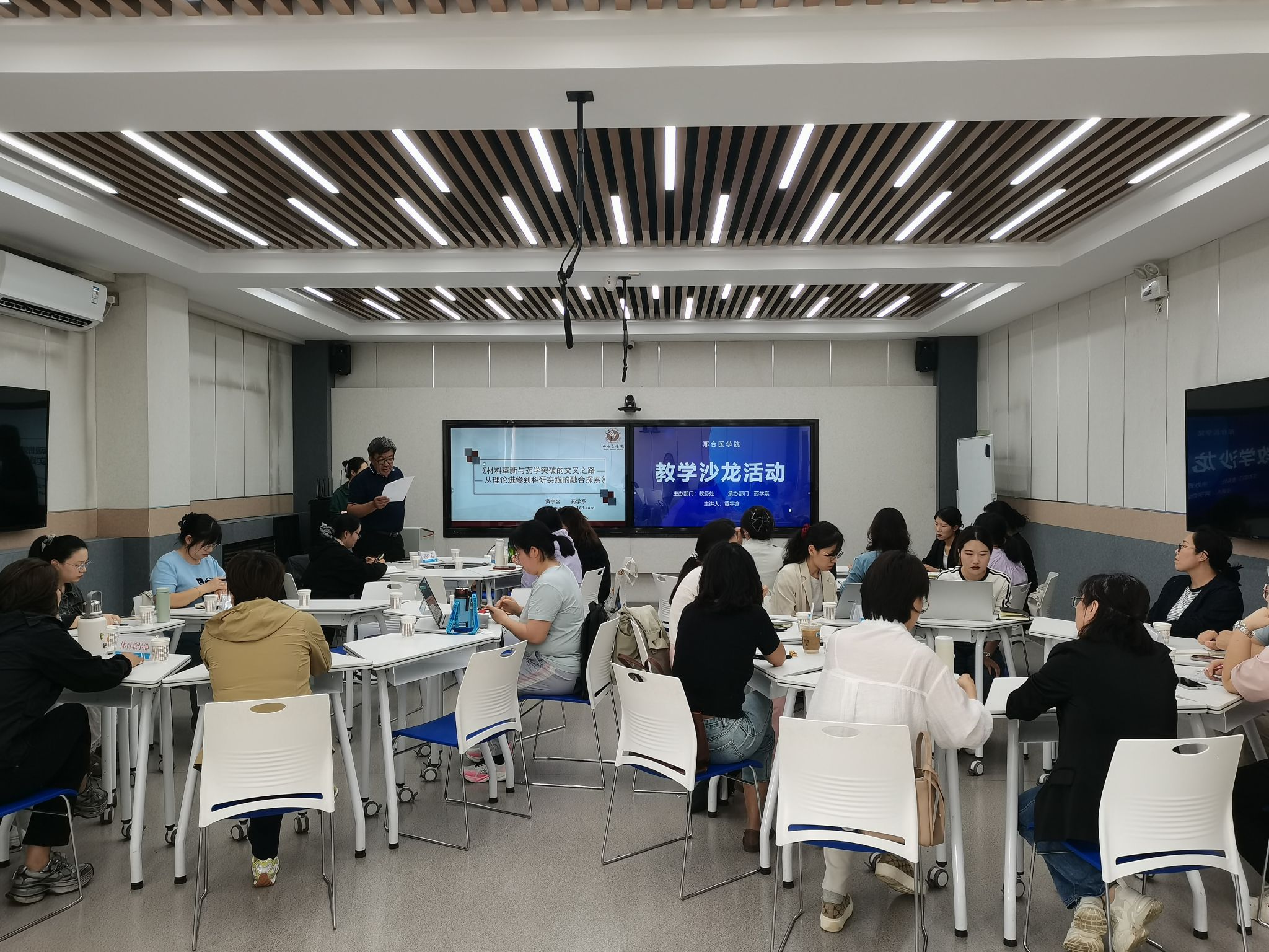为评估教师进修成果,促进教学理念更新,近日,教务处联合药学系在钢铁路校区信息楼开展了教学沙龙活动,各系部(院)30余名教师参加。活动由药学系党总支书记田振晓主持。