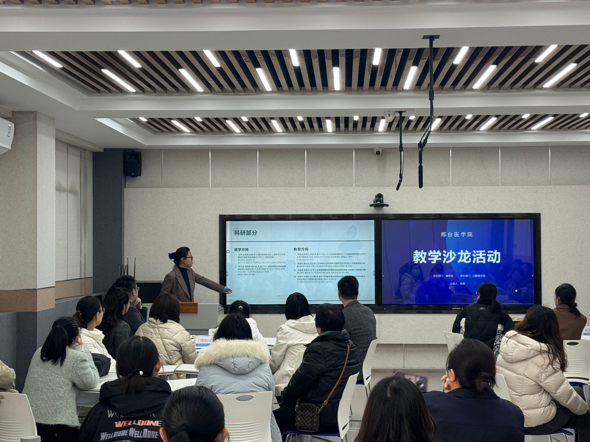 活动中,口腔医学系教师程前围绕“以学生为中心”的教学理念,系统阐述了教学与科研相互贯通的重要意义,分享了提升学生主体地位的实践经验,介绍了具体实践路径。