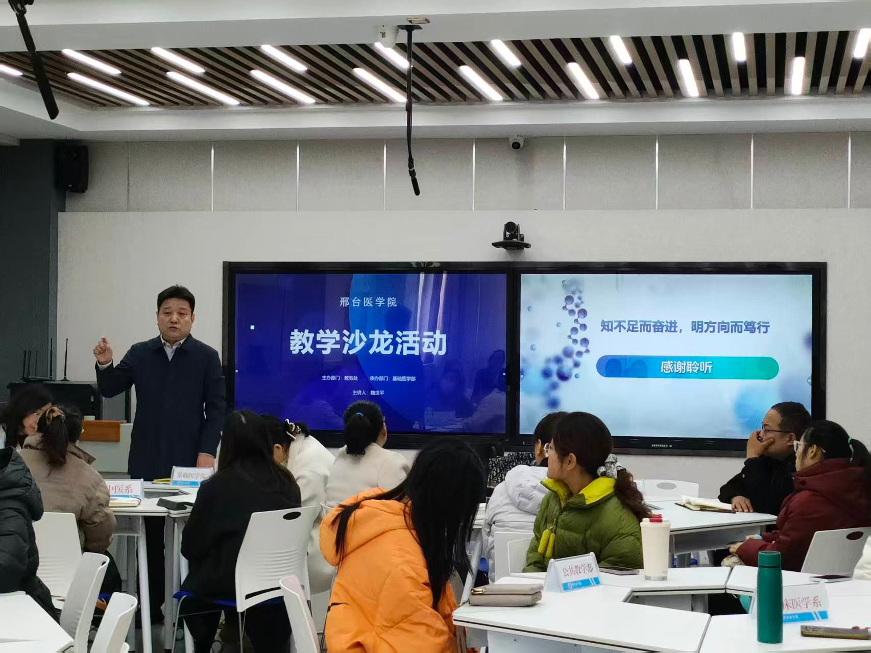11月14日上午,教务处与基础医学部联合举办教学沙龙活动,各系部(院)30余名教师参加。