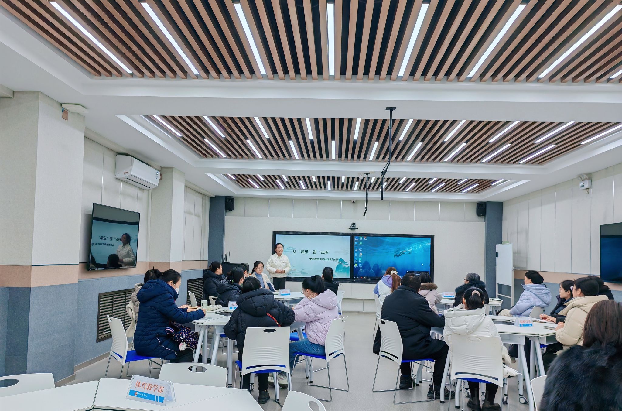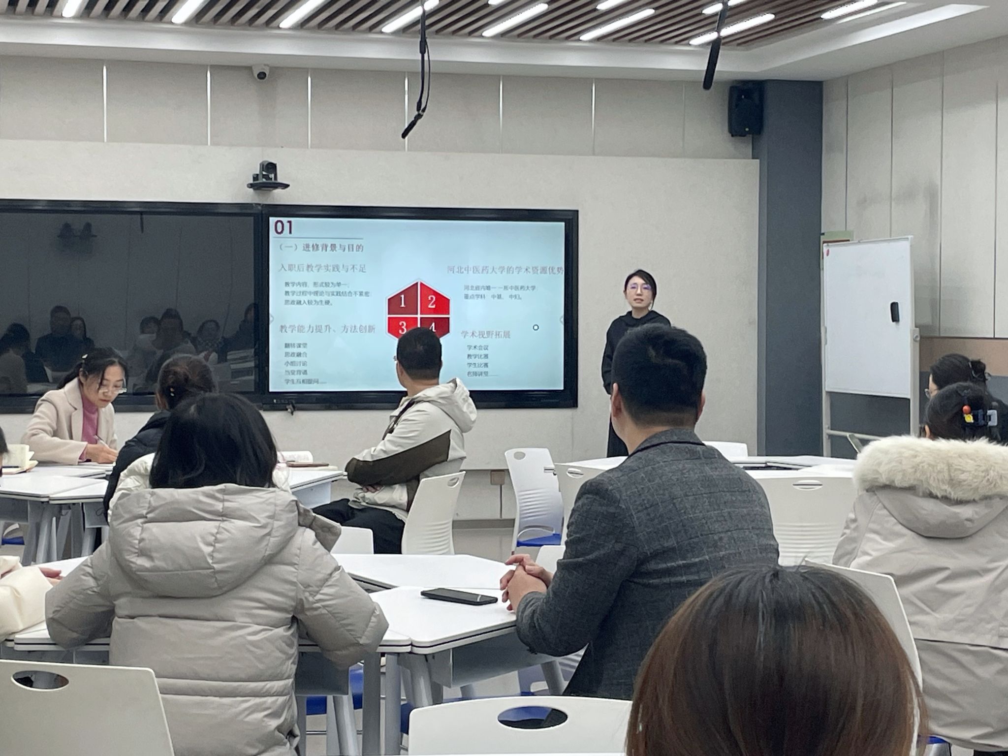 近期,教务处联合中医系分别于12月12日和12月19日下午举办教学沙龙活动,两次活动分别由中医系李雨霄和马欣老师进行分享交流。各系部(院)30余名教师参加。活动由中医系副主任宋瑞佳主持。