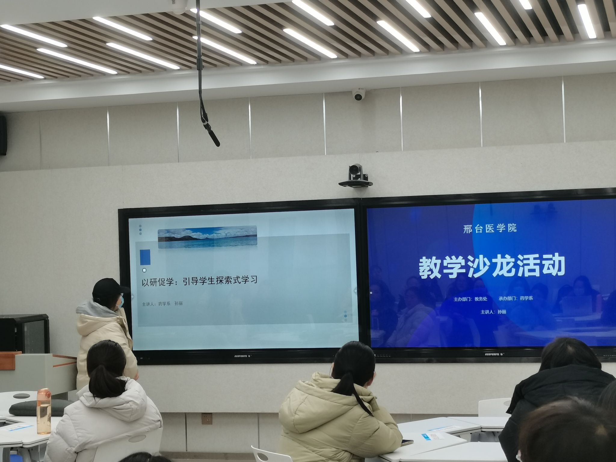 活动中,药学系教师孙丽以“以研促学:引导学生探索式学习”为核心,从专业背景、授课困境、应对策略及总结展望四个方面展开分享。孙老师强调了科研融入教学的核心价值在于以科研思维激发学生的学习兴趣与探索欲,培养其逻辑思维与批判性思维,将复杂理论与应用场景紧密链接。例如,在讲解药物新剂型微球制剂的过程中,引入上市新药“瑞欣妥”的案例,让学生更好的理解“新剂型”的优势与研发意义。与会教师围绕分享内容展开热烈讨论,纷纷表示此次沙龙针对性强、实操性足,为解决教学痛点、打造高效生动的课堂提供了切实可行的思路。
